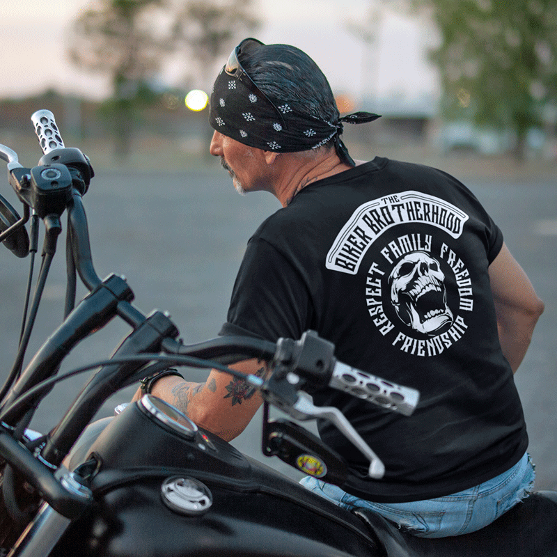 Wearing a Biker Brotherhood VIP Club Tee means something special. It shows people who you are and helps club members recognize each other out on the open rode. It's not about what you ride, just that you ride.