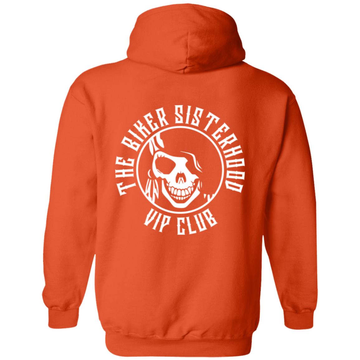 The Biker Sisterhood VIP Club pullover hoodie in SAFETY ORANGE features our Logo across the back and it represents something special, just like you!