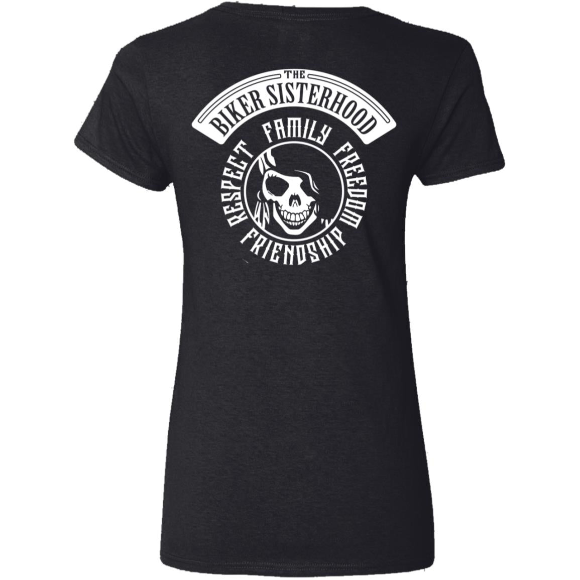 Biker Sisterhood VIP Club V-neck tees feature TWO club logos – one on the front and on the back, ensuring that you'll turning heads from every angle!